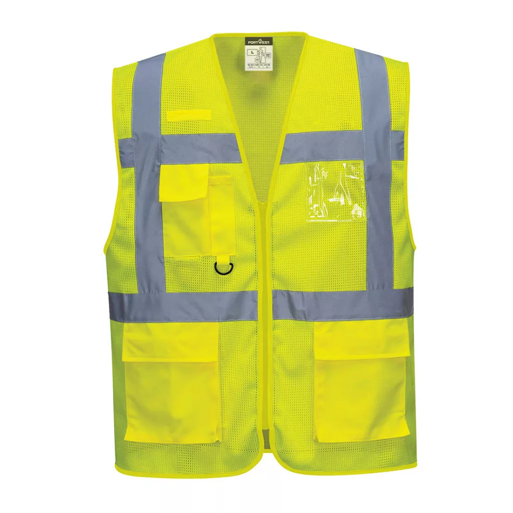 MeshAir technológia garantálja a kiváló légáramlást viselőjének. A MeshAir alapanyag megfelel az EN ISO 20471 szabványnak. A mellény további funkciói: praktikus zsebek, ID kártya tartó, rádió hurok, zippzáras záródás.