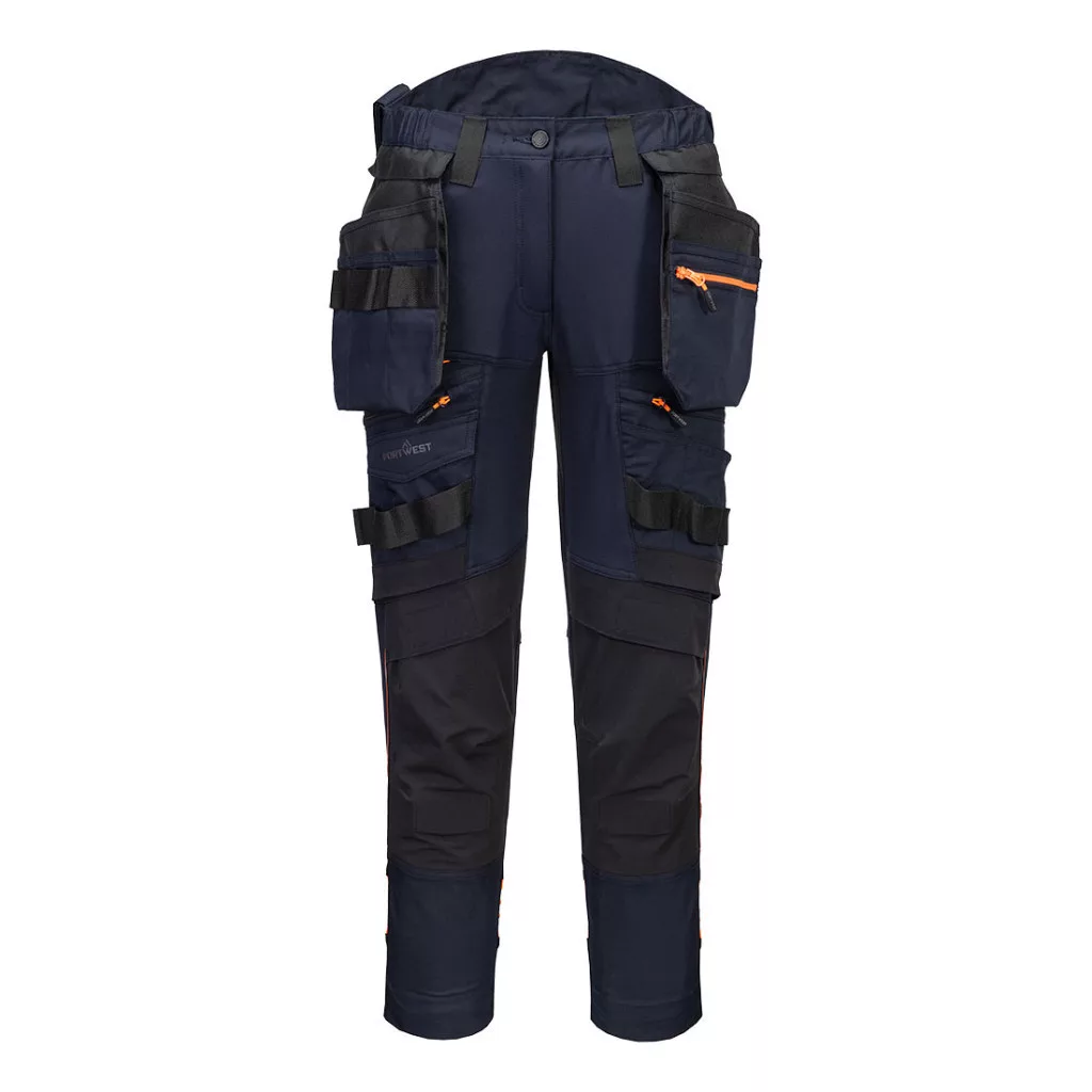 A Portwest DX4 termékcsalád női munkavédelmi nadrágja a funkcionalitás és a stílus tökéletes egyensúlyát kínálja. Ez a nadrág minden igényt kielégít, amelyet egy modern, aktív nő támaszthat a munkahelyén vagy akár szabadidős tevékenységek során. A szellőző és tökéletes nedvesség elvezető, 4 irányba nyúló stretch anyaga magas fokú mozgásszabadságot és komfortos viseletet biztosít. Megerősített, háromszoros varratai és ágyék része hosszú élettartamot garantál. A női, slim fit szabású munkás nadrág magasított, oldalt gumírozott dereka és leengedhető szára tökéletes illeszkedést garantál. A jobb láthatóság érdekében fényvisszavető elemekkel és szárán szegmentált fényvisszaverő szalaggal rendelkezik. A 16 praktikus tárolózsebében könnyedén tárolhatjuk a munkavégzéshez szükséges eszközeinket és személyes tárgyainkat. Válassza ezt a női munkás nadrágot, és élvezze a maximális kényelmet és stílust minden nap.