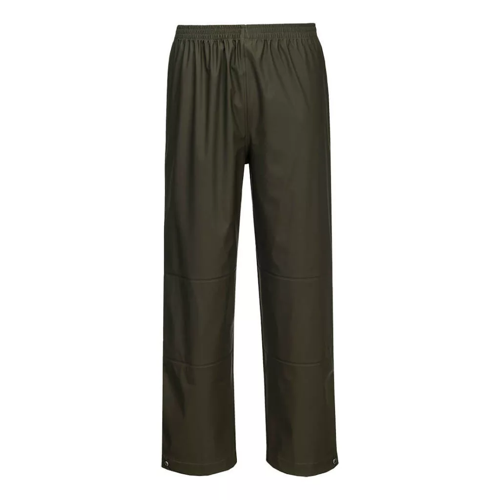 A Portwest esőnadrág ideális választás azoknak, akik megbízható, magas minőségű és kényelmes védőruházatot keresnek nedves és zord időjárási körülmények között végzett munkához. Ez a nadrág a kiváló vízállóságot, tartósságot és kényelmet ötvözi egy praktikus, könnyen kezelhető kialakításban. Főbb jellemzők: 100% poliészter trikó kötésű anyagát légáteresztő PU bevonattal láttak el, 180 g/m² súlyban. Ez a speciális anyag nemcsak rendkívül vízálló és szélálló, hanem légáteresztő is, így kényelmes viseletet biztosít, csökkentve a hő és páraképződés okozta kellemetlenségeket. A nadrág összes varrata hegesztett, hogy megakadályozza a víz bejutását a kritikus pontokon, ezzel maximális védelmet nyújtva az eső és nedvesség ellen. A teljesen gumírozott derékrésze fokozza a kényelmet és a stabil illeszkedést, így viselés közben a nadrág biztonságosan tart, anélkül, hogy szorítana vagy akadályozná a mozgást. Szegélyei patenttal állíthatók, hogy biztonságosan záródjanak, megakadályozva a víz beszivárgását a lábszárnál, ezzel még nagyobb védelmet biztosítva a viselő számára. A termék tartós és rugalmas kialakítása mellett könnyen tisztítható, lemosható felülettel rendelkezik, amely megkönnyíti a karbantartást, így hosszú távon is megőrzi kiváló tulajdonságait. Ez a vízálló esőnadrág tökéletes megoldás minden kültéri munkához, ahol a víz elleni hatékony védelem és a komfort egyaránt fontos szempont.