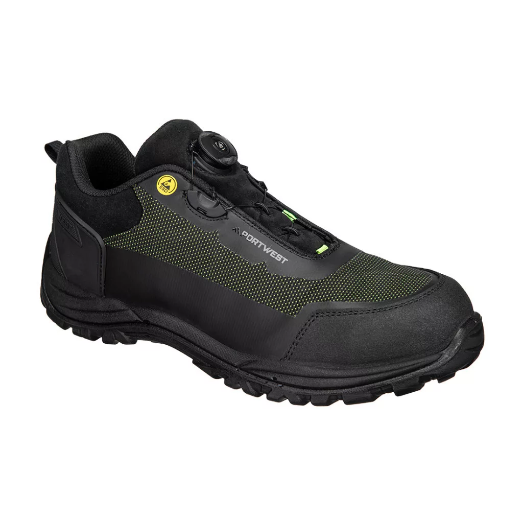 A Portwest munkavédelmi cipője a modern munkahelyek minden elvárását kielégítő, kiváló minőségű komfortos és biztonságos lábbeli. Felsőrésze strapabíró, vízálló A szintű vágásbiztos textil anyagból készült, nagy kopásállóságú orrborítással és erős TPU hátsó résszel, így hosszú élettartamot garantál. A munkáscipő kompozit orrmerevítője és talpátszúrás elleni védelme kiváló védelmet biztosít a lábnak a munkavégzés során előforduló sérülésekkel szemben. A munkáscipő átsó húzófüllel és innovatív huzalos fűzőrendszerrel gyorsabb fel- és levételt tesz lehetővé. 300ºC-ig hőálló, üzemanyag- és olajálló PU talpa csúszásmentes, így nedves vagy olajos felületen is biztonságos mozgást tesz lehetővé, ezzel csökkentve a csúszás okozta balesetek kockázatát. Könnyű súlya, energiaelnyelő sarka és párnázott cipőnyelve kényelmes viseletet biztosít az egész napos munkavégzés során. ESD tulajdonsága véd az elektrosztatikus kisülésekkel és feltöltődéssel szemben. Ez a sportos, utcai használatra is alkalmas védőcipő tökéletes választás olyan munkavállalók számára, akiknek fontos a kényelem, divatos megjelenés és a biztonság a munkavégzés során