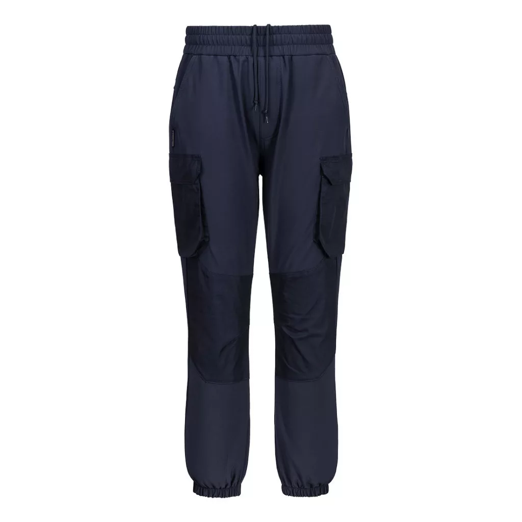 Kényelmes, laza stílusú joggerek. Tágas az ülepén és a comboknál, és enyhén elvékonyodik a passzés bokáig. A puha elasztikus derékrész és a belső húzózsinór ott tartja őket kényelmesen, ahol számít, míg a megerősített, térdpanelek nagyobb mozgásszabadságot és tartósságot biztosítanak. A multifunkciós zsebek ideálisak a telefonok, tollak és szerszámok biztonságos tárolására.