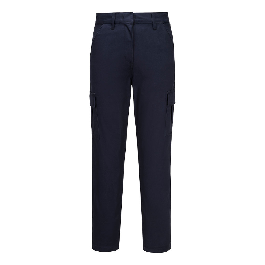 A Portwest női munkásnadrág a modern, női munkaruházat egyik kiemelkedő darabja, amely egyszerre ötvözi a funkcionalitást, a tartósságot és a divatos, karcsúsított slim fit megjelenést. Ez a nadrág ideális választás azoknak a nőknek, akik olyan munkaruhát keresnek, amely nemcsak a mindennapi tevékenységek során nyújt kényelmet és mozgásszabadságot, hanem elegáns, esztétikus megjelenést is biztosít, így tökéletes egyenruházati megoldás irodai, kereskedelmi vagy könnyebb fizikai munkakörnyezethez. Főbb jellemzők: A női munkavédelmi nadrág anyaga 98% pamutot és 2% elasztánt tartalmaz, 255 g/m² súlyú, bordázott, puha tapintású twill szövet. Ez az anyag különösen rugalmas, így a nadrág kényelmesen követi a mozgást, anélkül hogy korlátozná a dinamikus munkavégzést. A pamut tartalma biztosítja a légáteresztő képességet és a puha, kellemes érzetet, míg az elasztán hozzáadott rugalmassága révén a nadrág a nap végéig megőrzi komfortérzetét. Kialakítása kifejezetten a női testformához igazodik. A slim fit szabása modern, karcsú vonalakat biztosít. Összesen hat praktikus tárolózseb található rajta: két oldalsó zseb a gyors hozzáféréshez, két hátsó zseb a biztonságos tárolásra, valamint két cargo zseb a nagyobb tárgyak, eszközök elhelyezésére.. Belső szegélyén található fényvisszaverő díszítése pedig növeli a láthatóságot, ami különösen kültéri vagy kevésbé világos munkakörnyezetben hasznos. Ez a női munkanadrág kiválóan kombinálja a modern, karcsúsított női szabást a magas fokú funkcionalitással és tartóssággal. Kényelmes, rugalmas, praktikus és stílusos. Tökéletes választás mindazoknak, akik nem kívánnak kompromisszumot kötni a megjelenés, a kényelem és a munkahelyi praktikum között.
