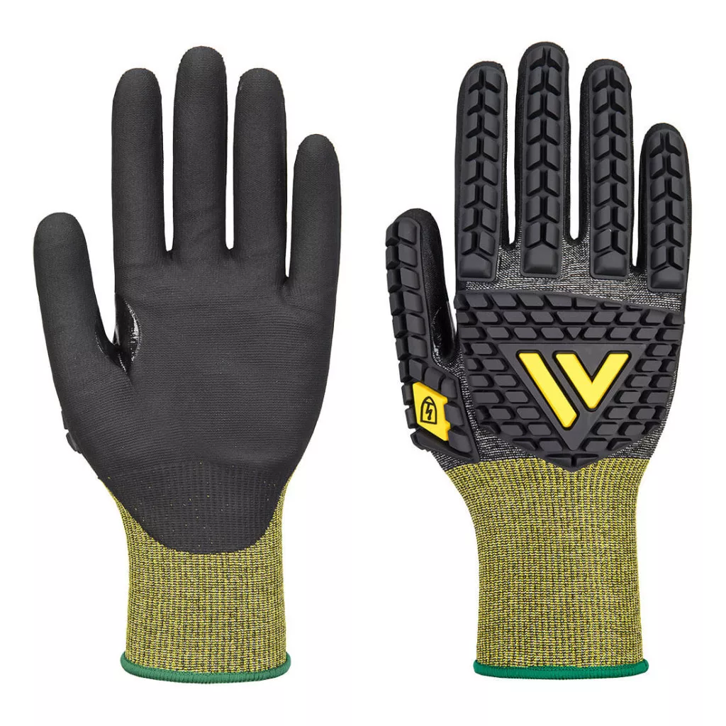 Az Impact E18 nitril antisztatikus ESD kesztyű olyan szakemberek számára készült, akiknek magas vágásállóságra (E szint), ütésvédelemre és elektrosztatikus kisülés (ESD) elleni védelemre van szükségük. Kopásálló, vízsugárral mosott nitril bevonatú tenyérrésszel, megerősített hüvelykujjrésszel és antisztatikus tulajdonságokkal. Ez a kesztyű kiváló biztonságot, fogást és kényelmet biztosít az érzékeny alkatrészek és veszélyes anyagok kezeléséhez.,Az A746 flexibilitásra lett tervezve, csökkenti a kéz fáradását, miközben megőrzi a pontosságot és az irányítást a bőrre simuló 18-as kötési sűrűségű béléssel és az ergonómikus PVC ütéscsillapító kialakítással. A PVC ütésálló panelek rugalmasságukat erős ütésállósággal egészítik ki, amely kényelmesen eloszlatja a közepes ütés terheléseket.,